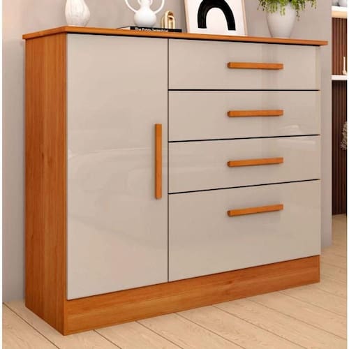 Cômoda Chicago 1 Porta 4 Gavetas Tcil Móveis - Cinamomo/off White Cômoda 4 Gavetas 01 Porta Com Sapateira Chicago Tcil Móveis Comoda ChicagoEncha o espaço com graça, charme e estilo com a Cômoda Chicago.Ela é ideal para decorar o ambiente com bom gosto e, de quebra, organizar e otimizar melhor o cômodo.Tamanho do produto montado: Altura: 91cm Largura: 104cm Profundidade: 44cm.Produto em MDP, 4 gavetas com corrediças telescópicas, sapateira lateral com prateleira, puxadores em PVC.Atenção: a tonalidade da cor pode variar de acordo com o lote do fabricante; e/ou as configurações de seu monitor.Imagens meramente ilustrativas: os objetos que ambientam as fotos não acompanham o produto.Contém 1 unidade do produto anunciado.