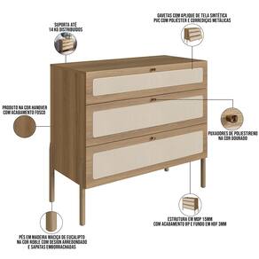 Descubra a harmonia perfeita entre estilo e funcionalidade com a charmosa Cômoda Com 03 Gavetas Pés Madeira Moss, da Lyam Decor!