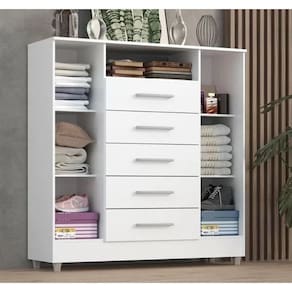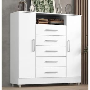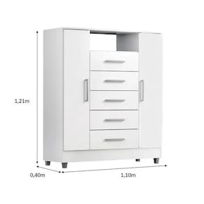CÔMODA ISABELE| Com 5 gavetas, nicho para perfumes, eletrônicos e 2 portas com 4 prateleiras, dispõe de um design sofisticado é própria para pessoas exigentes com organização. As gavetas possuem CORREDIÇAS METÁLICAS, fazendo assim com que a gaveta não caia na hora que você for utilizar, evitando acidentes com crianças. O móvel suporta pesos de até 7kg em suas gavetas e 20kg no tampo suficiente para acomodar televisores, além disso acompanha pezinhos para melhor limpeza e durabilidade do produto. As gavetas são espaçosas e comportam um bom volume de roupas e acessórios em seu interior. Possui acabamento Touch Alto-Relevo ou Alto Brilho UV e Semibrilho parte interna. Tem um design moderno que ao mesmo tempo atende muito bem as reais necessidades de uma ou duas pessoas. Altura 1,21m Largura 1,10m Profundidade 0,40m Atenção! Confira as dimensões deste produto e certifique-se de que passará normalmente por supostos elevadores, portas, escadas e/ou corredores de sua moradia; As imagens são ilustrativas, eletrodomésticos e demais objetos que compõem o cenário, não fazem parte do anúncio; Sobre a tonalidade das cores, poderá ocorrer alterações conforme a configuração do seu monitor. Orientamos que a montagem e instalações do produto seja realizado por um técnico de sua confiança, após a sua entrega. Garantia de 3 meses pelo fornecedor.