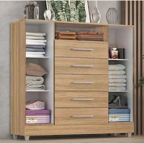 CÔMODA ISABELE| Com 5 gavetas, nicho para perfumes, eletrônicos e 2 portas com 4 prateleiras, dispõe de um design sofisticado é própria para pessoas exigentes com organização. As gavetas possuem CORREDIÇAS METÁLICAS, fazendo assim com que a gaveta não caia na hora que você for utilizar, evitando acidentes com crianças. O móvel suporta pesos de até 7kg em suas gavetas e 20kg no tampo suficiente para acomodar televisores, além disso acompanha pezinhos para melhor limpeza e durabilidade do produto. As gavetas são espaçosas e comportam um bom volume de roupas e acessórios em seu interior. Possui acabamento Touch Alto-Relevo ou Alto Brilho UV e Semibrilho parte interna. Tem um design moderno que ao mesmo tempo atende muito bem as reais necessidades de uma ou duas pessoas. Altura 1,21m Largura 1,10m Profundidade 0,40m Atenção! Confira as dimensões deste produto e certifique-se de que passará normalmente por supostos elevadores, portas, escadas e/ou corredores de sua moradia; As imagens são ilustrativas, eletrodomésticos e demais objetos que compõem o cenário, não fazem parte do anúncio; Sobre a tonalidade das cores, poderá ocorrer alterações conforme a configuração do seu monitor. Orientamos que a montagem e instalações do produto seja realizado por um técnico de sua confiança, após a sua entrega. Garantia de 3 meses pelo fornecedor.