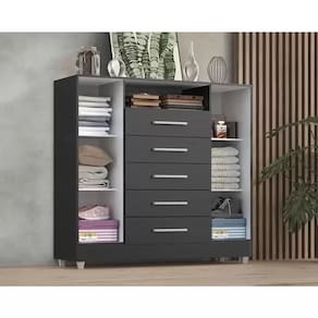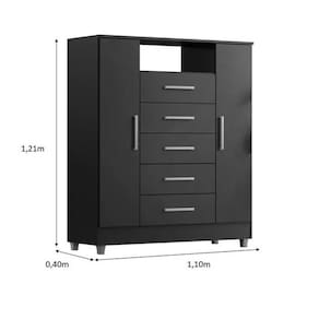 CÔMODA ISABELE| Com 5 gavetas, nicho para perfumes, eletrônicos e 2 portas com 4 prateleiras, dispõe de um design sofisticado é própria para pessoas exigentes com organização. As gavetas possuem CORREDIÇAS METÁLICAS, fazendo assim com que a gaveta não caia na hora que você for utilizar, evitando acidentes com crianças. O móvel suporta pesos de até 7kg em suas gavetas e 20kg no tampo suficiente para acomodar televisores, além disso acompanha pezinhos para melhor limpeza e durabilidade do produto. As gavetas são espaçosas e comportam um bom volume de roupas e acessórios em seu interior. Possui acabamento Touch Alto-Relevo ou Alto Brilho UV e Semibrilho parte interna. Tem um design moderno que ao mesmo tempo atende muito bem as reais necessidades de uma ou duas pessoas. Altura 1,21m Largura 1,10m Profundidade 0,40m Atenção! Confira as dimensões deste produto e certifique-se de que passará normalmente por supostos elevadores, portas, escadas e/ou corredores de sua moradia; As imagens são ilustrativas, eletrodomésticos e demais objetos que compõem o cenário, não fazem parte do anúncio; Sobre a tonalidade das cores, poderá ocorrer alterações conforme a configuração do seu monitor. Orientamos que a montagem e instalações do produto seja realizado por um técnico de sua confiança, após a sua entrega. Garantia de 3 meses pelo fornecedor.