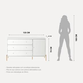 Cômoda Jasper com 3 Gavetas e 1 Porta Organização Inteligente com Toque Moderno para seu Quarto