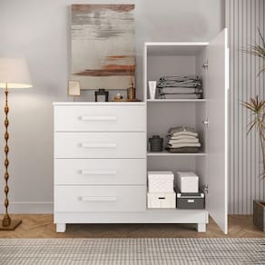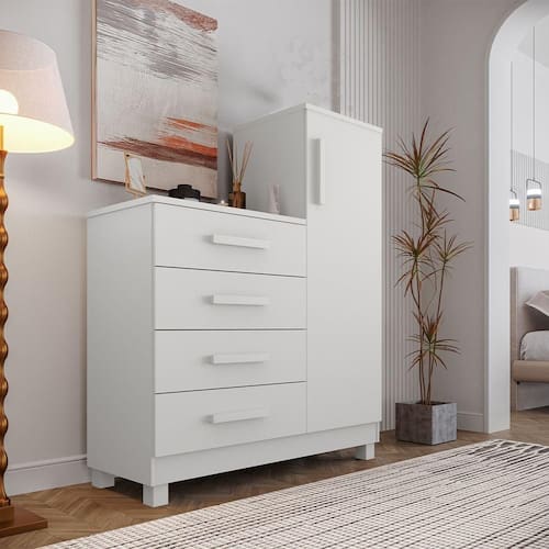 AS IMAGENS SÃO MERAMENTE ILUSTRATIVAS E PODEM SOFRER VARIAÇÕES DE COR E PEQUENOS DETALHES DE ACORDO COM O SEU MONITOR, ILUMINAÇÃO DO AMBIENTE E ATÉ MESMO A SUA PERCEPÇÃO com 4 Gavetas e 1 Porta Branca VersÃtil