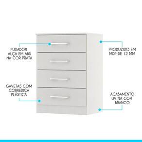 Cômoda Com 4 Gavetas P/ Quarto Solteiro Mdp 2007 Menu Móveis Branco Voce merece o melhor quando se trata de moveis para sua casa e a escolha certa para atender todas as suas necessidades. Com um design atual, une versatilidade, conforto e beleza. Com quatro gavetas, voce tera muito espaco para manter tudo organizado e ao alcance das maos. Produzida com materiais de excelente qualidade, garantindo a sua resistencia ao desgaste diario e mantendo sua beleza e funcionalidade por muito tempo. O melhor em moveis no design atual aliando conforto, qualidade e otimos precos, so na Menu Moveis! Caracteristicas: Produzido em MDP de 12 mm Acabamento UV Gavetas com Corredica Plastica Puxadores Alca em ABS