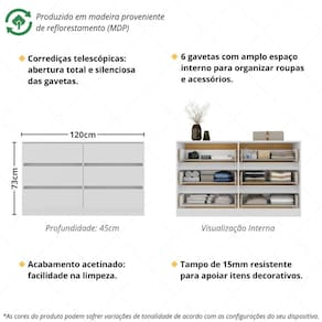 - Amplo espaço de organização: 6 gavetas funcionais para roupas e acessórios.