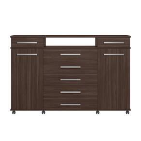 Características: Estrutura em MDP Acabamento em Pintura UV 07 Gavetas com corrediças metálicas 02 Portas com dobradiças metálicas Puxadores em Plástico ABS Possui Rodizíos.