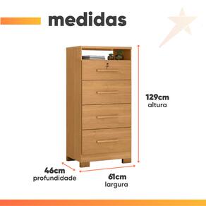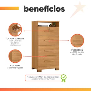 MODELO: Cômoda com Chave 4 Gavetas Primordial Max