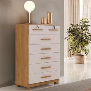A Comoda Benetil New Barcelona combina praticidade, seguranca e design moderno para deixar seu quarto ainda mais organizado. Com 7 gavetas espacosas, sendo duas menores com chave, voce mantem seus pertences protegidos e bem acomodados.