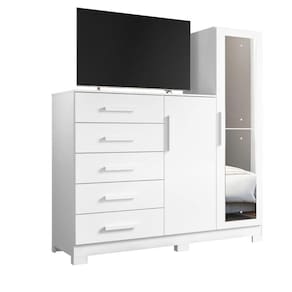 Cômoda com Espelho 5 Gavetas 2 Portas New Master Albatroz - Branco