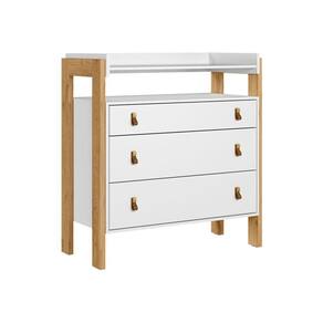 Na parte superior, o nicho aberto oferece fácil acesso aos itens mais utilizados no dia a dia do bebê, como fraldas, produtos de higiene ou objetos decorativos.