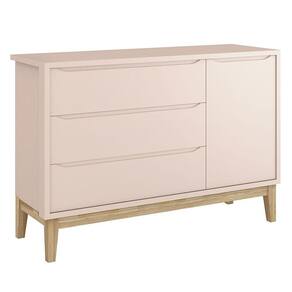 Cômoda Infantil New Classic com Porta Rosa com Pés Madeira Natural – Reller
