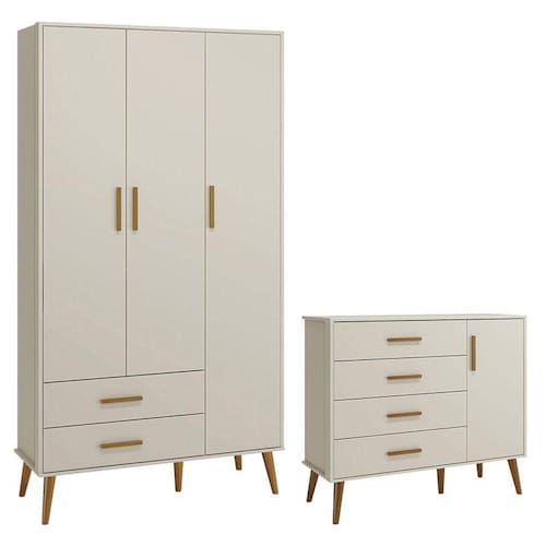 Cômoda com Porta e Guarda Roupa Infantil 3 Portas Isis Areia Acetinado - Reller