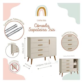 Cômoda Infantil com Porta Isis Areia Acetinado - Reller