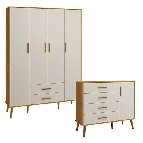 Cômoda com Porta e Guarda Roupa Infantil 4 Portas Isis Areia Acetinado Savana - Reller
