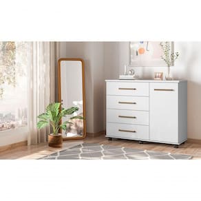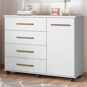 Cômoda Com Rodízios Flynn Branco A Cômoda é o complemento ideal para o seu quarto.