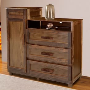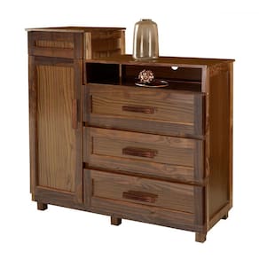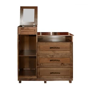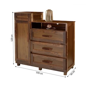 O(a) Cômoda Cuiabá Madeira Maciça 1 Portas 3 Gavetas com Espelho Imbuia Naturall - Pnr Móveis é produzido em Pinus e HDF na escala de brilho Fosco, e possui um grau de dificuldade de montagem: Médio.