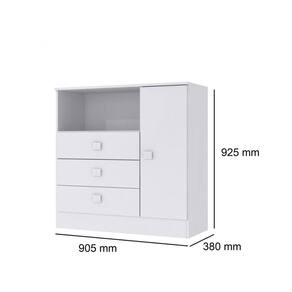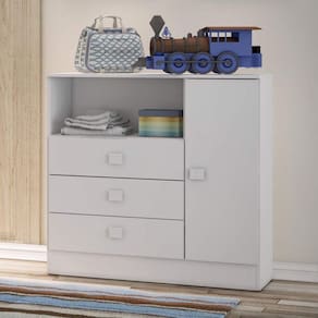 Cômoda em MDP BP branco 15 mm (nas laterais e prateleira), acabamento laca nas frentes de gavetas e porta. Possui quatro gavetas com corrediça telescópica e uma porta com dobradiças metálicas. A cômoda é fabricada em MDP 15 mm. Produto Montado: Sim Acabamento da Gaveta: Laca Acabamento da Porta: Laca Acabamento da Prateleira: Finish Foil Acompanha a Almofada: Não Ambiente Principal: Quarto de Bebê codigo_ean: 7898519564747 Complexidade da Montagem: Média: pode ser montado por mais de uma pessoa e/ou necessite de maior conhecimento para montagem Cor: Branco Cor: Branco Cor do Produto: Branco Cor Interna: Branco Escala de Brilho: Brilhante Escala de Brilho da Gaveta: Brilhante Escala de Brilho da Porta: Brilhante Escala de Brilho da Prateleira: Fosco Gaveta com Chave: Não Itens Inclusos: 1 Cômoda e Manual de Montagem. Linha ou Coleção: Baby Material da Gaveta: MDP Material da Porta: MDP Material da Prateleira: MDP Material do Fundo: T-HDF Material do Puxador da Gaveta: Plástico Material do Puxador da Porta: Plástico Material Principal: MDP Necessita Montagem: Sim Peso: 34,7 kg Peso Máximo por Gaveta: 2 kg Peso Máximo por Prateleira: 2 kg Possui Espelho: Não Possui Nichos: 01 Possui Pés: Não Possui Portas: Sim Possui Prateleiras: Sim Possui Rodízio: Não Possui Trocador: Não Quantidade de Gavetas: 03 Gavetas Quantidade de Prateleiras: 01 Prateleira Recomendações de Uso, Manutenção e Limpeza: É recomeado pano macio para limpezas do dia-a-dia, e pano úmido para tirar a poeira. Sapatas Niveladoras: Não Sistema de Montagem: Parafusos e cavilhas. Tipo de Corrediça da Gaveta: Metálica Telescópica Tipo de Dobradiça/Corrediça da Porta: Metálica Tipo de Porta: Bater Tipo de Puxador da Gaveta: Externo Tipo de Puxador da Porta: Externo Ean: 7898519564747