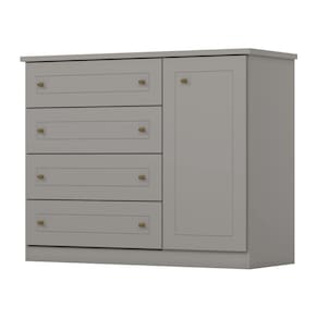 O(a) Cômoda de Bebê Americano 1 Porta 4 Gavetas Cinza - Henn é produzido em MDF e MDP na escala de brilho Brilho e Fosco, e possui um grau de dificuldade de montagem: Médio.