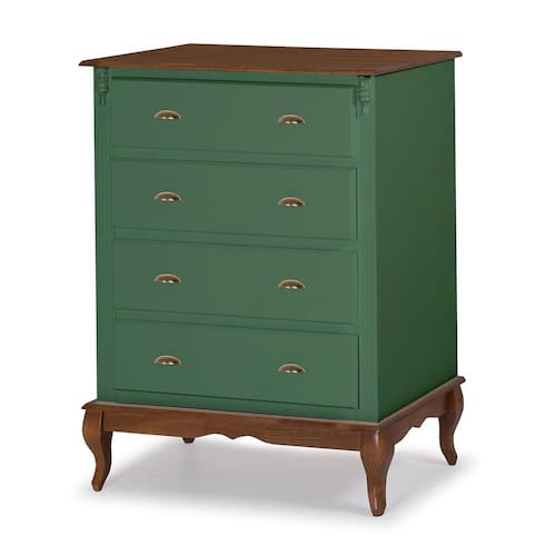 Cômoda de Madeira 4 Gavetas Pés Luiz XV 60816 Hannover Linz Móveis - Verde Musgo/Imbuia Glazer