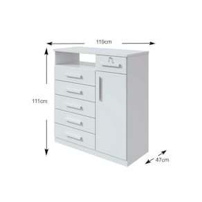 Cômoda de Quarto Da Vinci New c/ 1 Porta 1 Nicho e 6 Gavetas Branco - Lopas