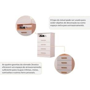 Cômoda de Quarto Jéssica c/ 1 Nicho e 4 Gavetas Flex Cinamomo/Cinamomo ou Off White - ACP