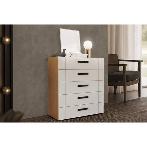 Cômoda de Quarto Lisboa c/ 5 Gavetas Freijo/Creme - Politorno