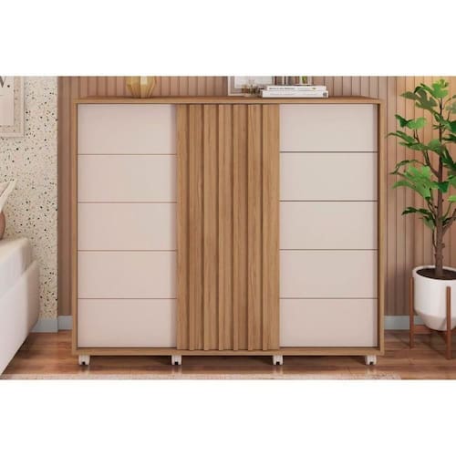 Material dos Cabideiros - Cabideira Metálico Material das Portas - Portas em MDP Tipo de Dobradiças - Dobradiças Metálicas Diferenciais das Portas - Portas com Detalhe Ripado Quantidade de Portas - 1 Porta de Correr Material das Gavetas - Gavetas em MDP Tipo de Corrediça - c/ Corrediças Telescópicas Quantidade de Gavetas - 5 Material de Estrutura Fundo Gaveta - Em HDF Tipo dos Pés - Rodízios Quantidade de Pés - 8 pés Material das Prateleiras - Prateleiras em MDP Quantidade de Prateleiras - 3