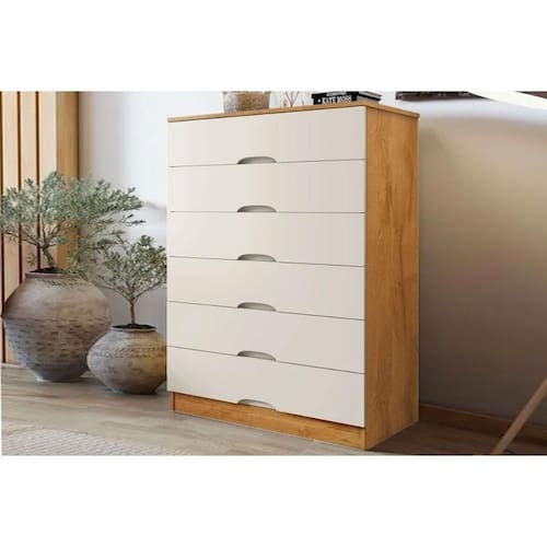 Organize roupas e acessórios com a cômoda de quarto Europa Sevilha, ideal para complementar o ambiente. Com 6 gavetas, oferece boa capacidade para manter peças dobradas sempre em ordem. A estrutura em MDF/MDP com acabamento ultravioleta semi brilho em Peroba/Off White contribui para um visual moderno e fácil de harmonizar. As corrediças telescópicas proporcionam abertura mais suave das gavetas no uso diário. Indicada para quarto de casal ou solteiro, combina com diferentes estilos de decoração e conta com a confiabilidade da marca Europa.
