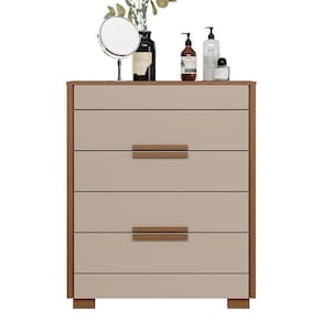 Cômoda Dhara 4 Gavetas Carvalho/fendi - Moval Carvalho/fendi Cômoda Dhara 4 Gavetas - Moval A Cômoda Dhara de 4 Gavetas é a solução ideal para quem busca aliar funcionalidade e elegância na organização do seu espaço. Com estrutura em MDP e acabamento em pintura UV, esta cômoda oferece durabilidade e um visual moderno. Suas 4 gavetas com corrediças telescópicas garantem um deslizamento suave e eficiente. O tampo de 15mm e as molduras laterais de 25mm conferem robustez ao móvel, enquanto os puxadores em MDF adicionam um toque de sofisticação. Com amplo espaço interno e pés em PVC, a Cômoda Dhara é perfeita para manter seu ambiente organizado com estilo e praticidade. ESPECIFICAÇÕES: - Estrutura em MDP - Pintura UV - 4 Gavetas - Corrediças telescópicas - Tampo de 15mm - Molduras laterais de 25mm - Puxadores em MDF - Amplo espaço interno - Pés em PVC