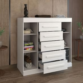 - Acompanha: 1 Cômoda, Kit Ferragens e Manual de Montagem