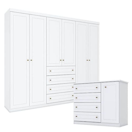 Cômoda e Guarda Roupa Casal 6 Portas Mississipi Branco Henn