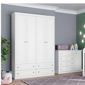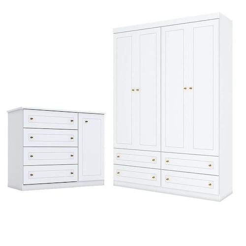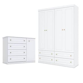 Cômoda e Guarda Roupa Infantil Americano 4 Portas Branco - Henn