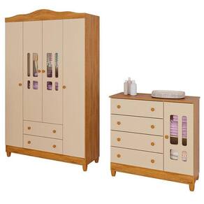 Cômoda e Guarda Roupa Infantil Ariel 4 Portas Off White Bétula Carolina Baby