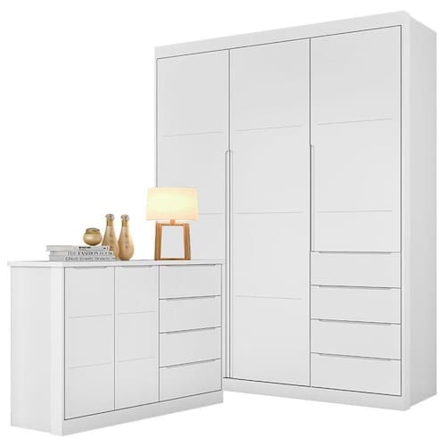 Cômoda e Guarda Roupa Infantil Blenda Branco Acetinado - Phoenix Baby