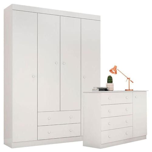Cômoda e Guarda Roupa Infantil Helena Branco Brilho - Phoenix