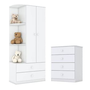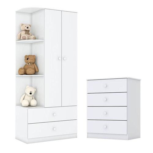 Cômoda e Guarda Roupa Infantil Labirinto Branco Brilho - Henn