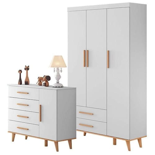 Cômoda e Guarda Roupa Infantil Ludmila Branco Bétula - Carolina