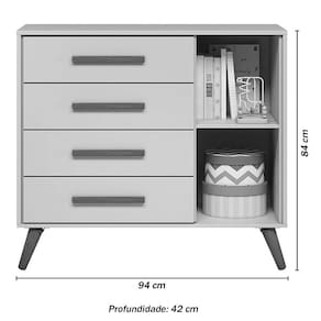 O(a) Cômoda Encanto 1 Porta 4 Gavetas Rosa - Qmovi é produzido em MDF e MDP na escala de brilho Semi-Brilho, e possui um grau de dificuldade de montagem: Médio.