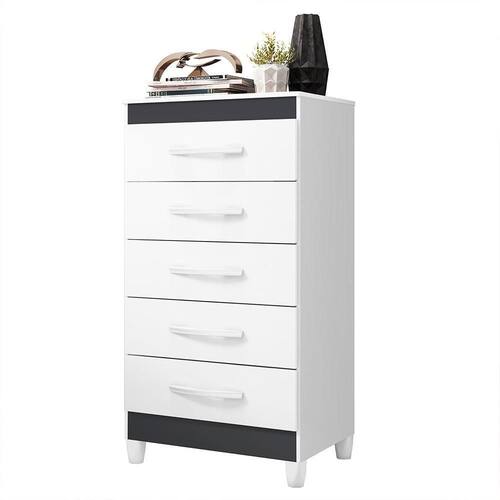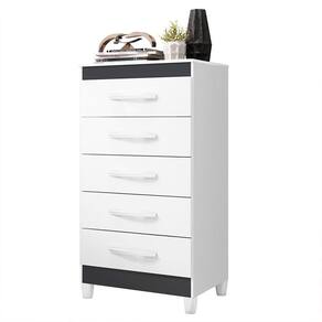 Cômoda Esmeralda 5 Gavetas Branco/titanium - Móveis Albatroz Branco/titanium Cômoda Esmeralda 5 Gavetas - Móveis Albatroz A Cômoda Esmeralda 5 Gavetas é uma solução prática e elegante para organizar o seu ambiente. Com estrutura em MDP e pintura UV, ela oferece durabilidade e um acabamento impecável. Suas 5 gavetas com corrediças metálicas garantem um deslizamento suave, proporcionando fácil acesso aos seus pertences. Os puxadores e pés em ABS completam o design moderno e resistente. Ideal para otimizar espaço e trazer mais funcionalidade ao seu quarto, a Cômoda Esmeralda combina qualidade e estilo, sendo perfeita para qualquer decoração. Atualize seu ambiente com este móvel versátil e aproveite o máximo de organização e beleza. ESPECIFICAÇÕES: - Estrutura em MDP - Pintura UV - 5 Gavetas - Corrediças metálicas - Puxadores em ABS - Pés em ABS