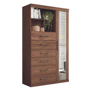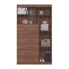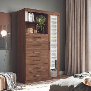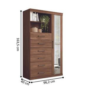 Possui uma porta com três prateleiras. Feita em MDP, contém seis amplas gavetas com corrediças telescópicas para guardar suas roupas com muita organização.