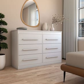 O(a) Cômoda Europa 6 Gavetas 100% Mdf Branco - Loja é produzido em 100% MDF na escala de brilho Semi-Brilho, e possui um grau de dificuldade de montagem: Médio.
