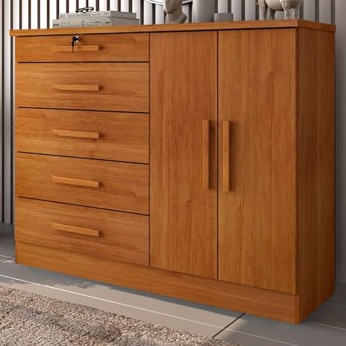 O(a) Cômoda Firenze 2 Portas 5 Gavetas Cinamomo - Pnr Móveis é produzido em MDF e MDP na escala de brilho Fosco e Semi-Brilho, e possui um grau de dificuldade de montagem: Médio.