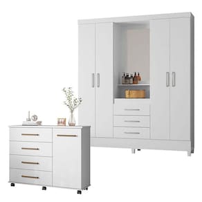 Cômoda Flora e Guarda Roupa Casal Capelinha Pérsia Branco Flex - Demóbile