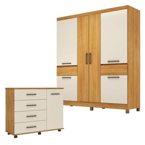 Cômoda Flora e Guarda Roupa Casal Mauá Cinamon Touch Off White – Demóbile