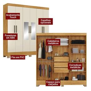 Guarda Roupa Casal Prático Cinamon Touch Off White com Espelho – Demóbile