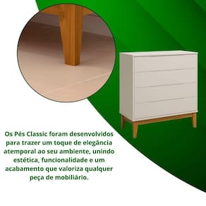 Os pés em madeira elevam o móvel do chão, proporcionando maior estabilidade, durabilidade e um toque de aconchego ao ambiente, além de facilitar a limpeza do espaço.