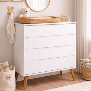Conta com 4 gavetas amplas, perfeitas para armazenar roupas, acessórios e objetos do dia a dia de forma prática e organizada. As frentes com puxador usinado garantem um acabamento moderno e dispensam puxadores externos, mantendo o visual leve e minimalista.