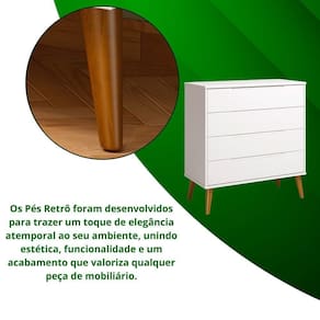 Os pés em madeira elevam o móvel do chão, proporcionando maior estabilidade, durabilidade e um toque de aconchego ao ambiente, além de facilitar a limpeza do espaço.