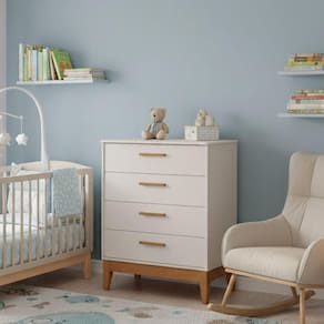 O modelo conta com gavetas espaçosas que permitem armazenar roupas, acessórios e itens pessoais de forma organizada e acessível no dia a dia.