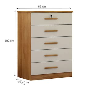 Esta precisando de uma cômoda? Apresentamos a linha Suiça, uma cômoda com 5 gavetas sendo uma delas equipada com chave para garantir mais segurança aos seus pertences. Fabricada em MDP/MDF garantindo qualidade e resistência. Seus puxadores amadeirados agregam charme e sofisticação, tornando-a uma peça versátil para complementar a decoração do seu quarto com estilo e praticidade. Venha aproveitar e garantir já o seu!